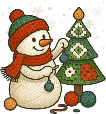 Yarn Snowman Decorating Christmas Tree DTF Transfer