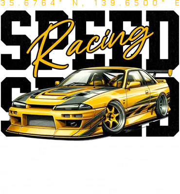 Yellow JDM Racing Car DTF Transfer | Speed Drift Street Race Design