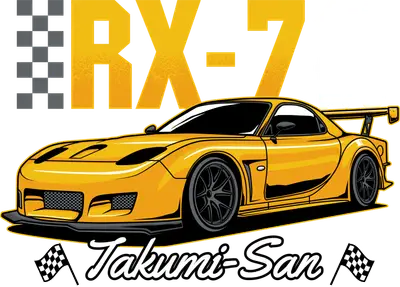 Yellow RX-7 JDM Racing Car DTF Transfer | Takumi-San Heat Press Design