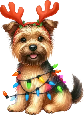 Yorkshire Terrier Puppy Christmas Lights Reindeer Antlers DTF Transfer