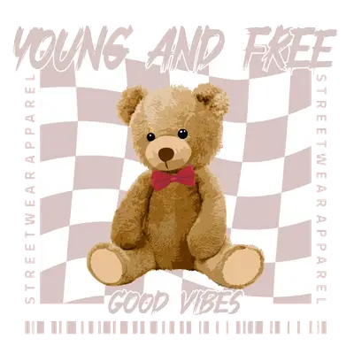 Young & Free Teddy Bear Streetwear DTF Transfer - Good Vibes Checkered