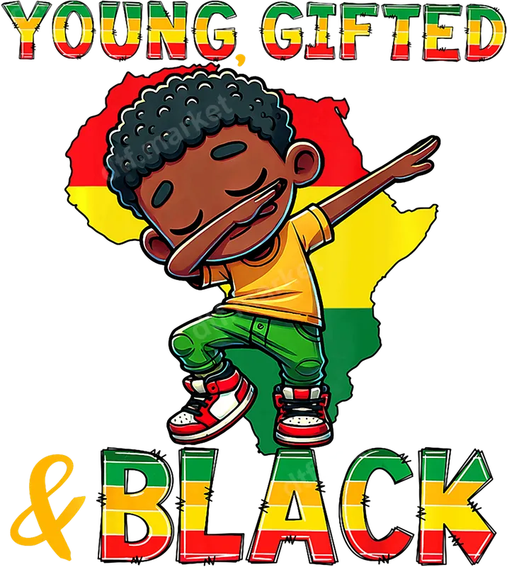 Young Gifted & Black Dabbing Boy DTF Transfer | African Heritage Ready to Press