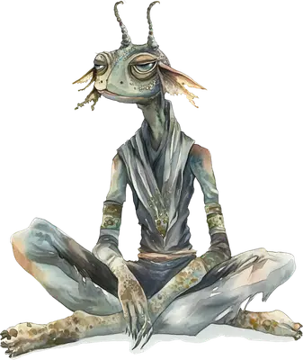 Zen Alien Creature DTF Transfer - Meditative Watercolor Ready to Press Design