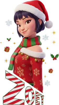 Zoey Christmas Character DTF Transfer | Holiday Sweater & Santa Hat