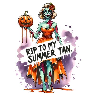 Zombie Pin-Up Girl DTF Transfer - RIP Summer Tan Halloween